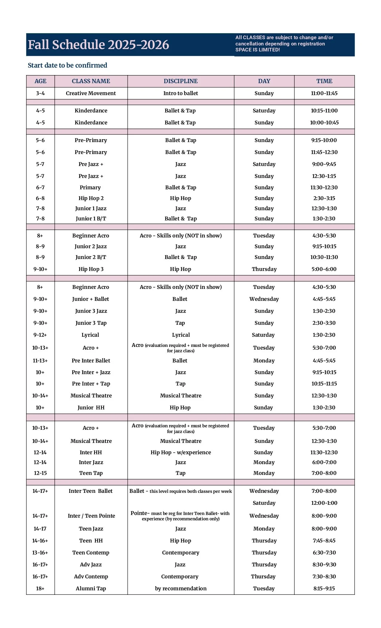 Class descriptions